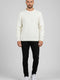 كنزة صوفية رجالية محبوكة بنمط اتجاهي، بياقة دائرية، لون بيج فاتح