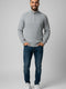 كنزة صوفية رمادية محبوكة بتفاصيل حياكة كابلية وإغلاق بسحاب.