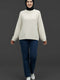 سويتر بياقة دائرية أساسي ذو تصميم بلحية - أبيض