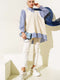 سترة مزينة بياقة قميص باللون البيج والأزرق الداكن