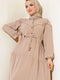 Yeni sezon elbisemiz harika tasarımıyla sizler için geldi. Elbisemizin önü yarım düğmelidir. Elbisemizin beli tünelli olup, ip bağcıklıdır. Kol bilekleri lastiklidir. Dik yakadır. Elbisemiz kat kat modeldir. Astarsızdır. Sade ve şık elbisemiz renk seçenekleriyle dolabınızda yerini beklemektedir.