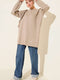 سترة أساسية محبوكة سادة برقبة دائرية، لون المنك