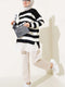 تونيك مخطط من قماش الأرز المحبوك فضفاض باللون الأسود