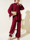 | Name | بدلة مزدوجة القطع مع رباط معصم مطاطي باللون الأحمر الداكن |