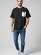 تيشيرت رجالي مطبوع بتقنية الحقن مع جيوب، أسود