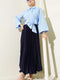 قميص قصير بأزرار ورباط جانبي باللون الأزرق الفاتح