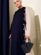 | Name | فستان أزرق داكن برباط جانبي وفتحة رقبة دائرية |