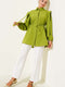 قميص بأكمام طويلة وحبل وحزام بلون أخضر فستقي