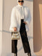 معطف مزدوج الصدر مبطن بالفرو، لون بيج فاتح.