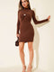 فستان بني اللون مزين بتفاصيل حجرية في الأمام وتصميم ملتحي