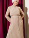 فستان شيفون مطوي مع حزام محبوك باللون البيج