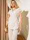 | Name | طقم من قطعتين من الكتان، بياقة على شكل حرف V وربطة جانبية، لون بيج |