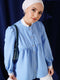 قميص مخطط بياقة مطرزة باللون الأزرق