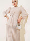 بدلة من قطعتين مع تنورة جانبية مطوية باللون البيج