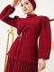 طقم من قطعتين مع تنورة جانبية مكشكشة باللون العنابي