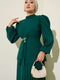 طقم من قطعتين باللون الزمردي مع تنورة جانبية مكشكشة ومطوية