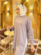 Nameبدلة رمادية مكونة من قطعتين بتفاصيل شق وخطوط بيضاء