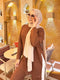 بدلة من قطعتين مخططة باللون الأبيض ومفصلة بفتحة باللون البني