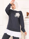 Nameبدلة أويشو رمادية مع تنورة مطوية وتفاصيل زهور