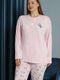 طقم بيجامة من الفيسكوز المطرز بمقاسات كبيرة باللون الوردي