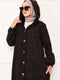 عباءة مزخرفة كاملة الطول مزودة بأزرار على طراز كاشي كاب – أسود-فوزون
