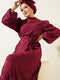 فستان جاكار بحزام وأكمام منفوخة منقوش، لون عنابي