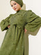 فستان جاكار بحزام وأكمام منفوخة منقوش، لون كاكي