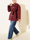 جاكيت جلدي بحزام ولحية، لون عنابي