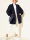 جاكيت بحزام وأكمام على شكل جناح الخفاش أزرق داكن