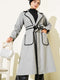 معطف كشمير رمادي اللون مزين بتطريزات على شكل صدفة وحزام