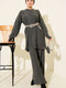 طقم تريكو أساسي مضلع مكون من قطعتين باللون الدخاني
