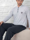 طقم بيجامة رجالي بأزرار وشعار باللون الرمادي