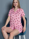 طقم بيجامة شورت بأزرار بطبعة فراولة وردي