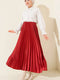 تنورة مطوية بمظهر ساتان، لون عنابي