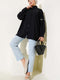 قميص أسود مع تفاصيل لؤلؤية على الأكمام