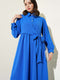 فستان نصف حجر بأزرار جانبية برباط باللون الساكسوني