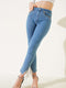 بنطال جينز ضيق مزين بشراشيب باللون الأزرق