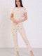 طقم بيجامة بياقة دائرية ومنقوشة باللون البيج