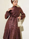 فستان جاكار منقوش بكشكشة وكشكش بني