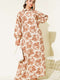 فستان بأزرار حجرية وياقة قميص منقوشة باللون الجمل