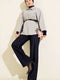بونشو كشمير رمادي بأزرار وياقة قميص