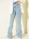 بنطلون جينز قصير الساق بقصة إسبانية واسعة من الأسفل، مفتوح من الأمام