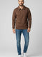 سويت شيرت رجالي بياقة مزينة بتفاصيل وسحاب نصفي، لون بني فاتح