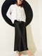 بلوزة بيضاء مع تفاصيل دانتيل في الأمام