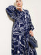 | Name | فستان أزرق داكن مع ياقة قاضية وتفاصيل منقوشة |