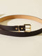 حزام رفيع بمشبك مربع معدني بني غامق