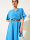 فستان ميدي مزدوج الصدر بحزام أزرق