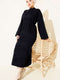 | Name | فستان محبوك أزرق داكن بياقة دائرية وحزام |