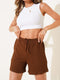 شورت وافل بخصر مطاطي، لون بني فاتح