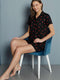 طقم بيجامة شورت بأزرار بطبعة فراولة باللون الأسود